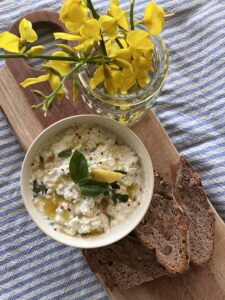 - Werk af met een goede scheut olijfolie, de pistache nootjes en de munt.